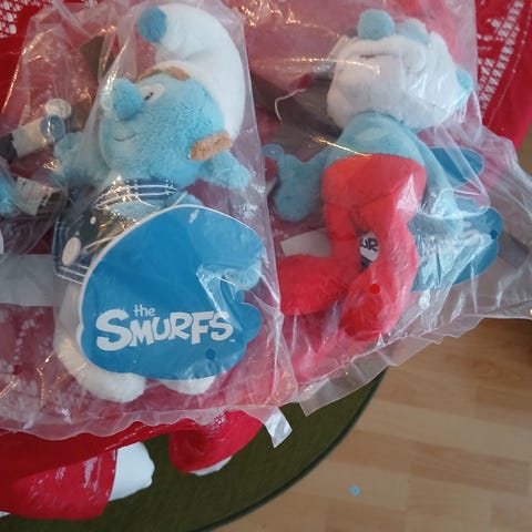 Myydään Smurffit palapeli, jossa kannessa Smurffiina-hahmo ja palapuolella smurffikyläaiheinen kuva.