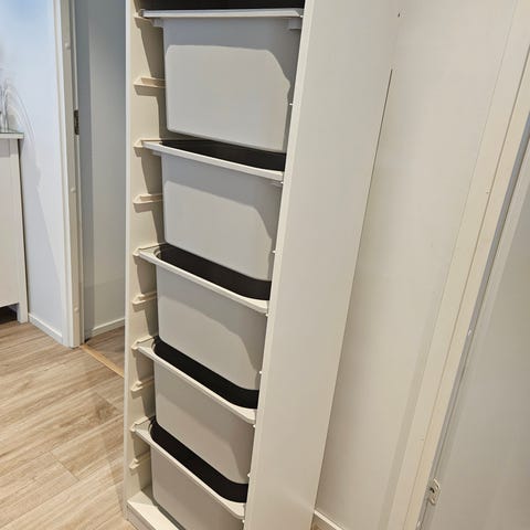 Myydään IKEA TROFAST säilytyskokonaisuus (94×44×91 cm), vaaleaksi petsattu mänty / valkoinen.