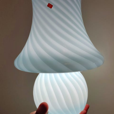 Hyvässä kunnossa olevan n. 70-luvun Murano sienivalaisin. Alkuperäisellä johdolla joten 100% varmuutta toimivuudesta ei ole. Ollut käytössä kyllä noin 10 vuotta sitten. Lasi täysin ehjä.