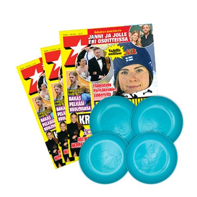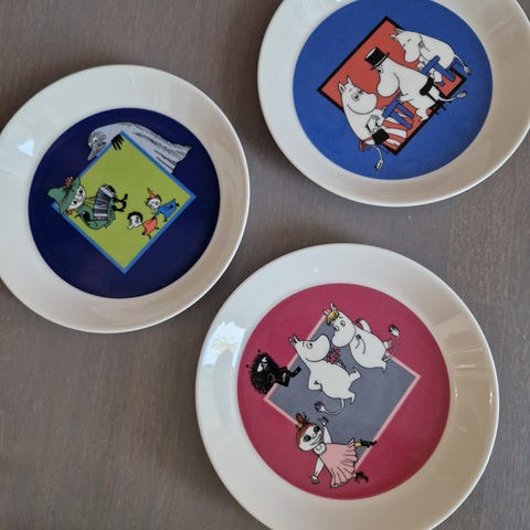 Käytössä ollut Muumilautanen. Jälkiä aterimista