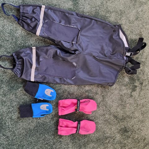 Lupilu-merkkiset vuorelliset kurahousut koossa 86/92. Edessä pieni liimatahra kirpparin hintalapusta ja saumassa pientä kulumaa, joka näkyy kuvassa. Ehjät jalkalenkit. Myynnissä myös kevyet kumisaappaat koossa 21 ja ilmaiseksi annetaan kurahousuihin kuuluva, kuluneempi sadetakki, katso muut ilmoitukseni.