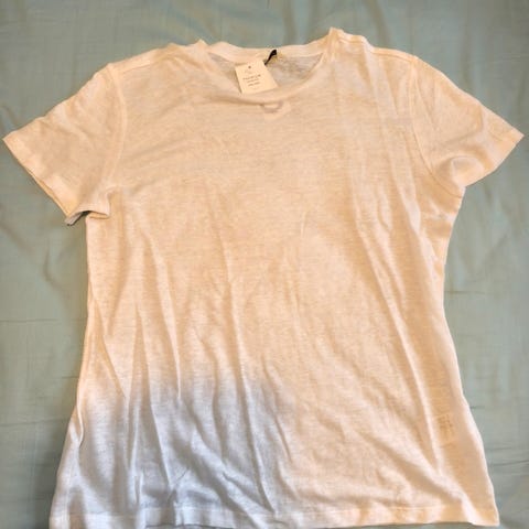 Naisten valkoinen pellavapaita koossa M. Pitkähihainen malli, jossa edessä ja takana kevyet laskokset. Hihoissa napit. Materiaalina pellava 60% ja puuvilla 40%, Käyttämätön, laput kiinni. Jäänyt kaappiin.