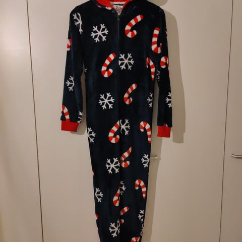materiaali pehmeä polyester, pitkät hihat, joissa resorit 7 cm, edessä vetoketju 38 cm, huppu, missä valkoiset silmät, ammottava kita sojottavine hampaineen ja päälaella vaaleanvihreä ”harja”. Mittoja; pituus takaa niskasta haaroihin 60 cm, kainalosta lahkeen suuhun 98 cm, lahkeen sisäpituus 58 cm, lahkeen suun resori 6 cm, hiha olalta hihan suuhun 48 cm, kainalosta hihan suuhun 38 cm. Kunto hyvä. Nouto tai postitus pakettina € 8,90. Maksu käteisenä tai tilille. Huom. En lähetä pakettia Toridiilillä eikä minulla ole Mobile Payta.