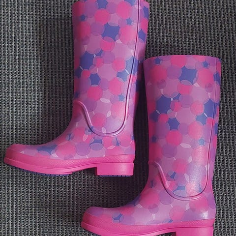 Korallinpunaiset kumisaappaat. Kunto kuin uusi, vain muutamia käyttökertoja takana. Pohjassa likaa, kärjessä tummentumaa. Pesu jää ostajalle. Vain nouto.