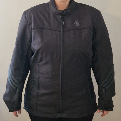 Richa moottoripyörätakki. Koko S. Väriltään musta, valkoisilla yksityiskohdilla ja Richa-logolla selässä. Takissa on erillinen irrotettava sisävuori, joka näkyy kuvassa erikseen. Mallissa on vetoketjukiinnitys edessä sekä säätömahdollisuuksia helmassa ja hihoissa tarrakiinnityksillä. Soveltuu moottoripyöräilyyn ja muuhun ajovarustekäyttöön. Takki on vedenpitävä.