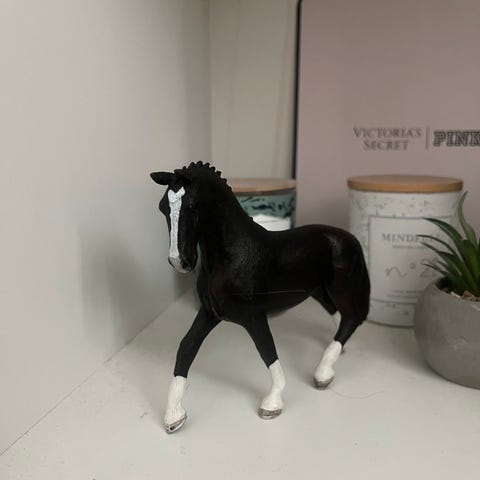 Schleich hevonen. Kunnoltaan uutta vastaava musta Schleich ruuna.