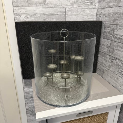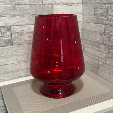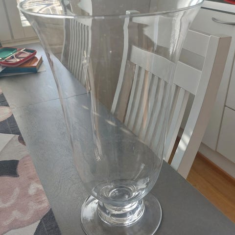 Vain esittelykäytössä ollut Suurenmoinen -lasihurrikaani alkuperäispakkauksessaan. Koristekävyt saa mukaan.