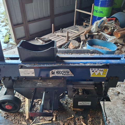 Hydraulinen klapikone / halkaisukone polttopuiden halkaisuun. Laite on teräsrakenteinen ja varustettu hydraulisylinterillä sekä letkuilla. Soveltuu puiden halkaisuun esimerkiksi maatila- tai pihatyökäytössä. Runko on jalustalla, joka voidaan kiinnittää maahan tai alustaan. Tarkemmat tekniset tiedot, Max halkaisu pituus 45cm ja iskun pituus 30cm. Toimii traktorin hydrauliikalla ja voimaa riittävästi. Voin nostaa kyytiin.