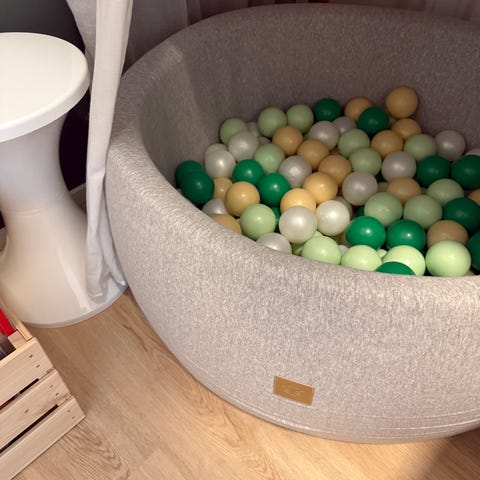 Hyväkuntoinen, yhden lapsen leikkimä Meow babyn pallomeri. Palloja on reilu 200kpl mustan, valkoisen ja kullan väreissä.
