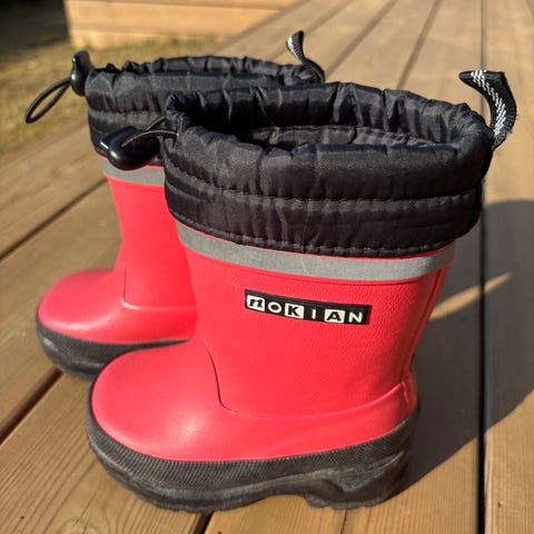 Nokian lasten kumisaappaat, koko reilu 22. Väri musta–lime. Unisex-malli, joka sopii sekä tytöille että pojille. Saappaissa on kumipintainen varsi ja kuvioitu pohja. Mukana irrotettavat huopapohjalliset.