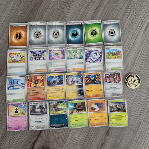 Pokémon TCG korttikokoelma säilytysrasian kanssa. Kokoelma sisältää suuren määrän erilaisia Pokémon-kortteja, mukana sekä peruskortteja että erikois- ja kiiltokortteja useista eri tyypeistä. Kortit on lajiteltu nippuihin ja osa on pakattuna pusseihin. Mukana metallinen Pokémon-säilytysrasia korttien säilytykseen ja kuljettamiseen. Sopii Pokémon Trading Card Game -korttipelin pelaamiseen tai kokoelmakorteiksi. Vain käteinen.