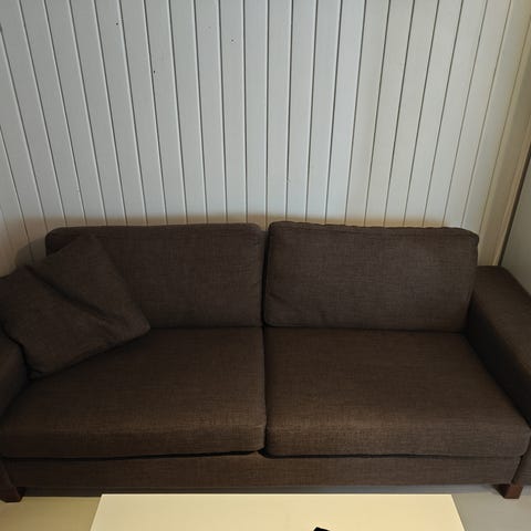 Siistikuntoinen sohva, kankaat pesty, pari pientä pinttymää on, muuten siisti, kevyt ja tyylikäs.