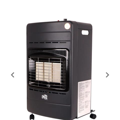 Kaasulämmitin sisä- tai ulkokäyttöön. Yläosassa käyttökytkimet ja varoitustarra. Mukana erillinen kaasupullo, jossa venttiili ja liitin. Myydään pelkkä lämmitin tai settinä kaasupullon kanssa. Pullossa on vielä kaasua jäljellä.