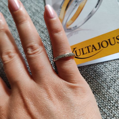 Käytetty mutta hyväkuntoinen timanttisormus koossa 16. Ei kaiverruksia.