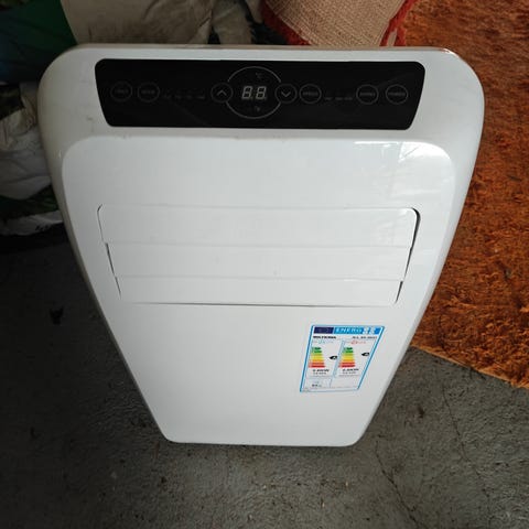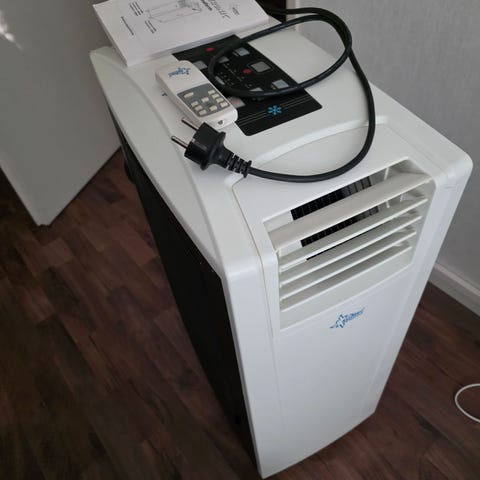 Nedis siirrettävä ilmastointilaite sisäkäyttöön. Laitteessa on eturitilä ilman ulostulolle ja takana suodatin sekä vesisäiliö. Ylhäällä on ohjauspaneeli, josta voi säätää puhallusnopeutta ja toimintoja painikkeilla. Laite toimii verkkovirralla ja siinä on pyörät helpottamassa siirtämistä huoneesta toiseen. Soveltuu kodin tai toimiston viilennykseen ja ilman kierrätykseen. Väriltään valkoinen harmaalla yläosalla.
