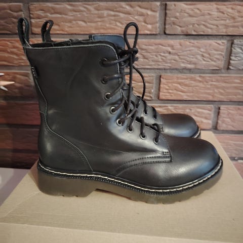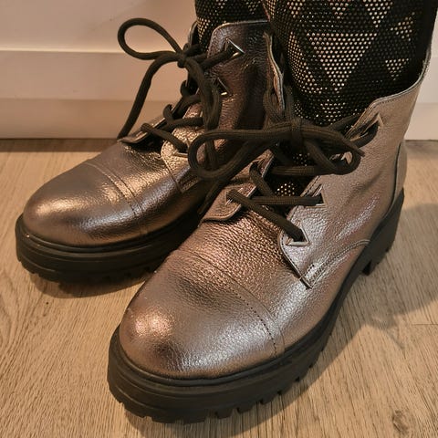 Siistissä kunnossa olevat maiharit, joissa vetoketju sivussa ja nauhat lähinnä koristeena. 9 reikäiset. Ei vuorta. Hieno yksityiskohta on punaiset pohjat. Ovh 159€.