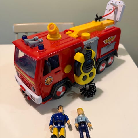 BRIO lelujuna ja paloauto setti. Sopii käytettäväksi BRIO-junaradan kanssa. Pidemmän junan yksi luukku on rikki ja lähtee irti.