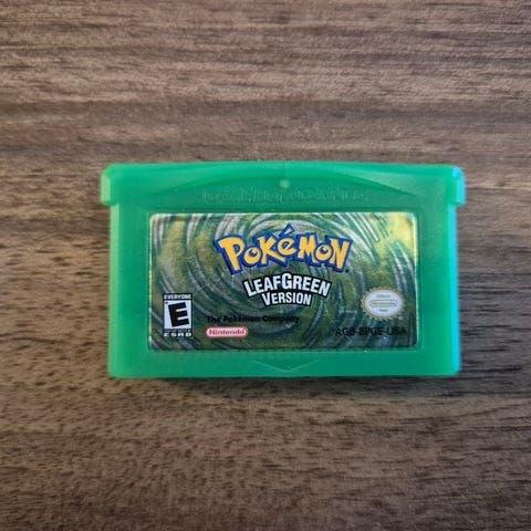 Pokemon LeafGreen Version -Game Boy Advance peli. Pelkkä peli eli ei sisällä koteloa eikä ohjekirjaa (eikä kuvissa näkyvää pelikonsolia). Peli toimii moitteettomasti.