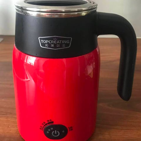 King Hoff vedenkeitin. Vedenkeitin on violettia metallia ja siinä on teräksiset yksityiskohdat. Pohjassa olevien merkintöjen perusteella se soveltuu useille liesityypeille. Soveltuu veden keittämiseen esimerkiksi teen ja muiden kuumien juomien valmistukseen kotikeittiössä.