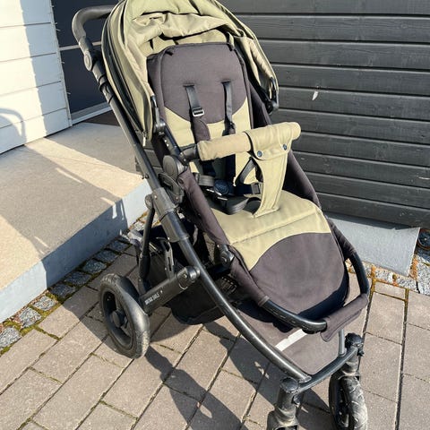 Isoihin renkaisiin on vaihdettu liikkeessä suojaavammat ulkokumit. Klipsi, joka kiinnittää rattaat kasattuna on murtunut. Muilta osin toimivat.