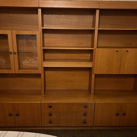 Kunto on erinomainen. Hylly on seissyt samassa paikassa vähäisellä kulutuksella viimeiset 40-50 vuotta.