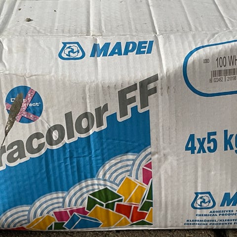 Myydään avaamaton 5 kg pussi Mapei Ultracolor Plus saumauslaastia.