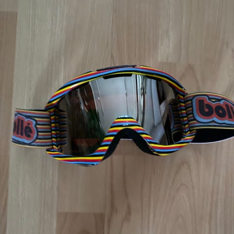 Dragon ja Uvex laskettelulasit oransseilla linsseillä. Dragon-laseissa valkoinen kehys ja joustava hihna sivussa olevalla logolla. Uvex-laseissa sininen kehys ja leveä joustava hihna. Molemmissa malleissa kaareva, oranssisävyinen linssi, joka on tarkoitettu vähentämään häikäisyä ja parantamaan näkyvyyttä rinteessä. Soveltuvat lasketteluun ja lumilautailuun. 5€/kpl.