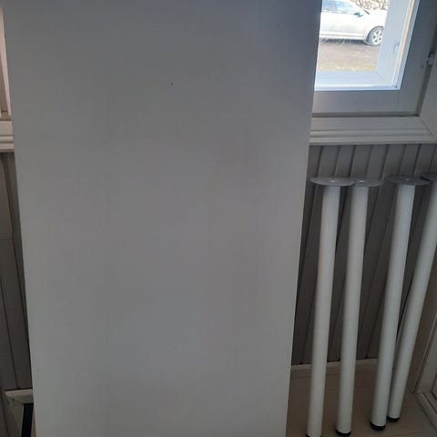 Hyvässä kunnossa oleva valkoinen säädettävä työpöytä 120x60.