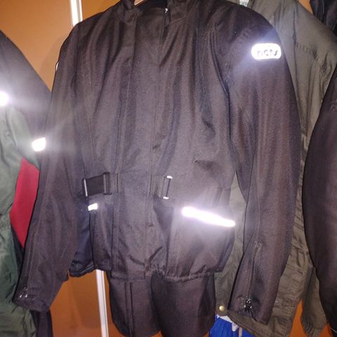 Richan takki k. L, olka/kyynär suojat, takkia pidetty parikertaa. Hanxin housut k. 40, lonkka/polvisuojat, oikean polven sisäsivulla hankauma ei kuitenkaan reikää. Mielellään nouto.