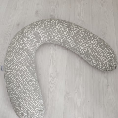 bbhugme palkittu raskaus- ja imetystyyny. Pitkä, muotoiltava tyyny, joka tukee kehoa raskauden ja imetyksen aikana. Mukana vihreä päällinen ja kantokassi säilytystä ja kuljetusta varten. Tyynyn päissä on säädettävät stopperit, joilla tyynyn kireyttä ja muotoa voi muuttaa käyttötarpeen mukaan.