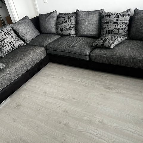 Vuosia käytössä ollut sohva. Koiratalous. Heittotyynyt, vetoketjulla olevat päälliset. 9 kpl isoja, 2 kpl pieniä. Kahdessa pikkutyynyssä koira kulmia vähän järsinyt, päälliset helposti vaihdettavissa. Muuten kaikki ehjää. Sohvan kätisyyttä ei vaihdettavissa. Sohva menee kolmeen osaan kuljetuksen helpottamiseksi.