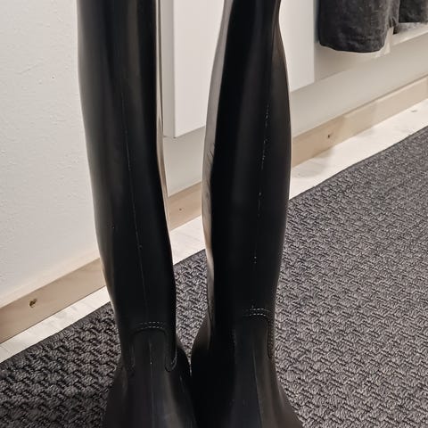 Mustat ratsastus saappaat, sisäosan kangas hieman kulunut kantapäistä. Pohja vielä hyvä kuten kuvasta näkyy. Nouto Ojakkala, Vihti