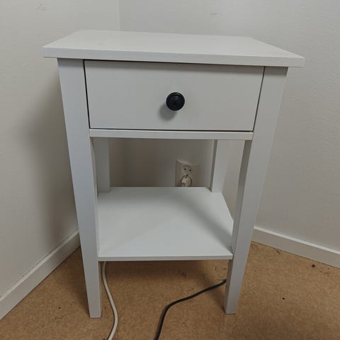 Mustanruskea yöpöytä, hieman kolhua. Yleisilme siisti. Vain nouto. Käteinen tai mobilepay.