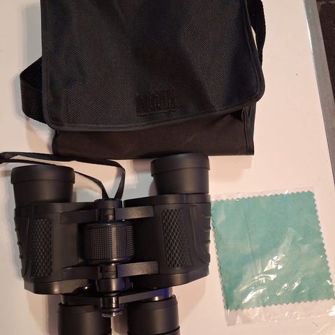 Kuvan tehokkaat kiikarit tarvikkeineen, uudet ainoastaan koekatseltu, jos lähetys niin kulut päälle.