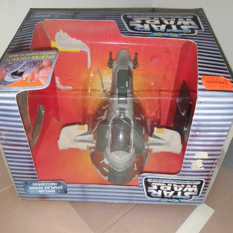 Erilaisia Star Wars -aiheisia aluksia ja ajoneuvoja, kuten hävittäjiä ja kuljetusaluksia. Sopivat kokoelmaan, leikkeihin tai koristeeksi teemasta kiinnostuneille. Useita eri malleja samassa erässä.