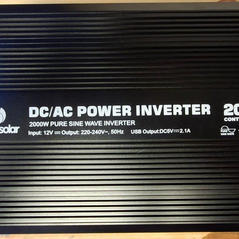 Korkealaatuinen 12 V siniaaltoinvertteri, joka tarjoaa 2000 W jatkuvaa virtaa. Invertterissä on Schuko-pistokkeen lisäksi USB 5 V 2.1 A pistoke ja portti kaukosäädintä varten ( ei sisälly pakkaukseen).