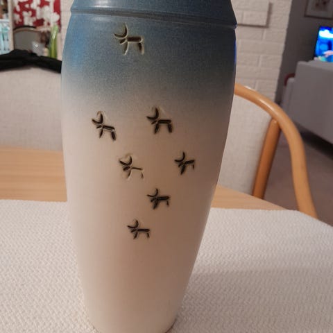 Maljakko, kynttilänjalka ja puinen kissa