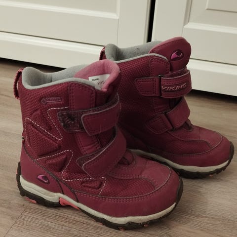 Myydään käytetyssä kunnossa olevat Viking välikausikengät kokoa 28. Molemmissa kengissä saumat ovat hieman auenneet edestä (kuvat 5 ja 6), mutta kengät ovat silti täysin käyttökelpoiset. Hinta 5€.