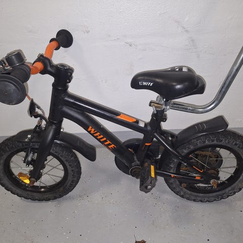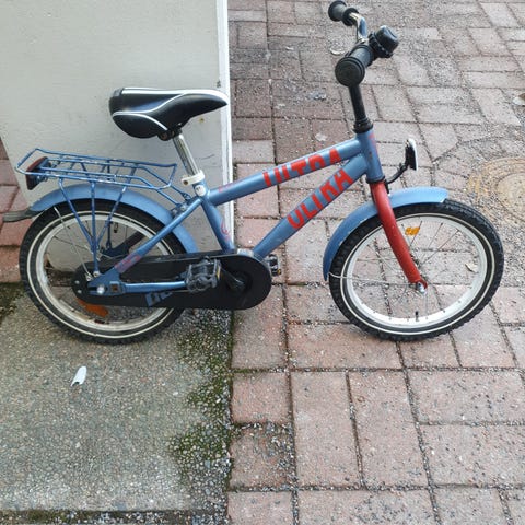 Lasten polkupyörä. Jalkajarrut ja käsijarru, pyörässä ei vaihteita, tangossa kiinni kori joka vähän vääntynyt. (Ks. Kuvat) Vain nouto.