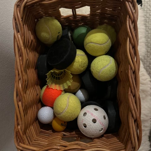 Muovikorissa useita pieniä lasisia maljakoita tai kulhoja. Maljakot ovat kirkasta lasia, osassa sinistä koristetta reunassa. Soveltuvat esimerkiksi pienten kukka-asetelmien tai tarjoilun astioiksi.pöytään mukaan pallot ja mailat ,annetaan vain yhdessä ,kori ei tule mukaan