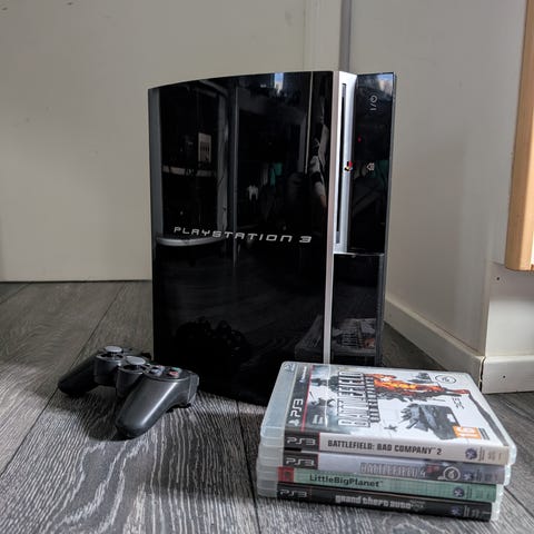 Sony Playstation 3 -pelikonsoli, väri musta. Kuvissa kaksi ohjainta ja virtajohto sekä useita PS3-pelejä. Konsoli soveltuu PlayStation 3 -pelien pelaamiseen ja DVD-/Blu-ray-levyjen toistoon. Tarkemmat tiedot mukana tulevista peleistä ja lisävarusteista kannattaa tarkentaa myynti-ilmoituksessa.