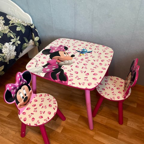 Lasten pöytä, tuolit ja lelulaatikko