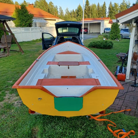 Hyväkuntoinen ehjä paikkaamaton vene. Mukaan airot ja tappi.