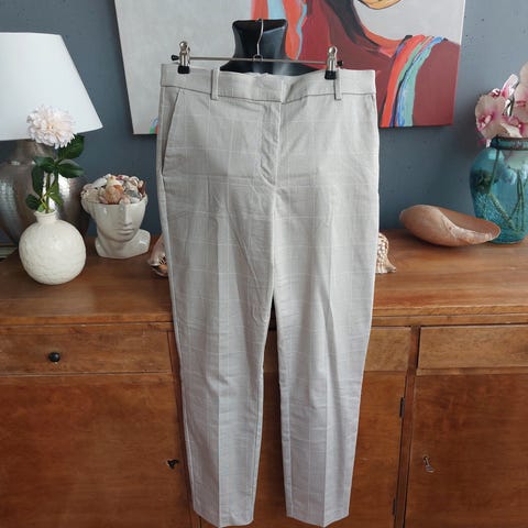 Cu & Pret mustavalkoiset ruuhutuhousut. Koko on 42. Mitat: vyötärö 46cm x2, haara-puntti 75cm. Materiasli on 65% polyesteri, 32% viskoosi, 3% elastaani. Pesu 40 asteessa. Siististä kunnossa.