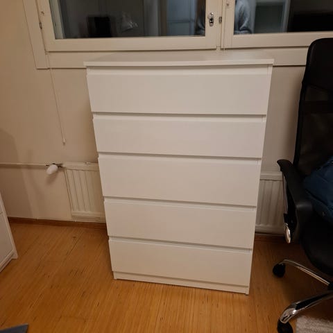 Myydään yleisilmeeltään siisti Ikean MALM -lipasto kuudella laatikolla.