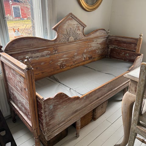 Hyväkuntoinen ns.aurinkosänky Etelä-Pohjanmaalta. Ollut käytössä sisällä. Ei hajuja tms. Koko leveys 180, syvyys 60.