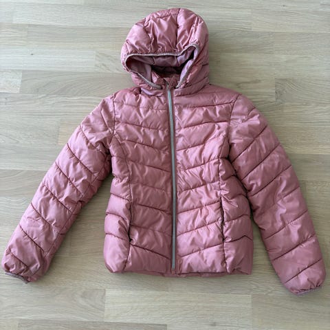 Mc Kinley liila kevyttoppatakki 134/140. Uutena ostettu ja yksi lapsi käyttänyt. Jotain käytön jälkeä ja vaaleita pieniä tahroja löytyy. Resoreissa hieman nukkaa. Yleisilme kuitenkin siisti. Niska-helma n. 49 cm.