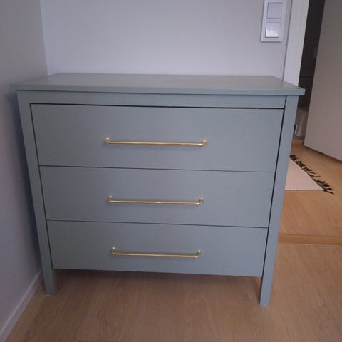Annetaan kuvan mukainen pieni lipasto jossa alahyllyn etureunan pinta kärsinyt mutta joku kätevä käsistään saa sen varmasti kunnostettua.