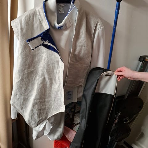 Täysi setti miekkailuvarusteita säilämiekkailuun. Kaikki mitä tarvitaan treeneihin ja kisoihin.