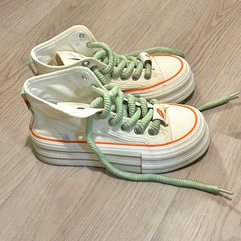 Raikkaan kesäinen raita kuosi. Kengissä koko 39, mutta vastaa kokoa 37. Kengän sisämitta 22,5 cm